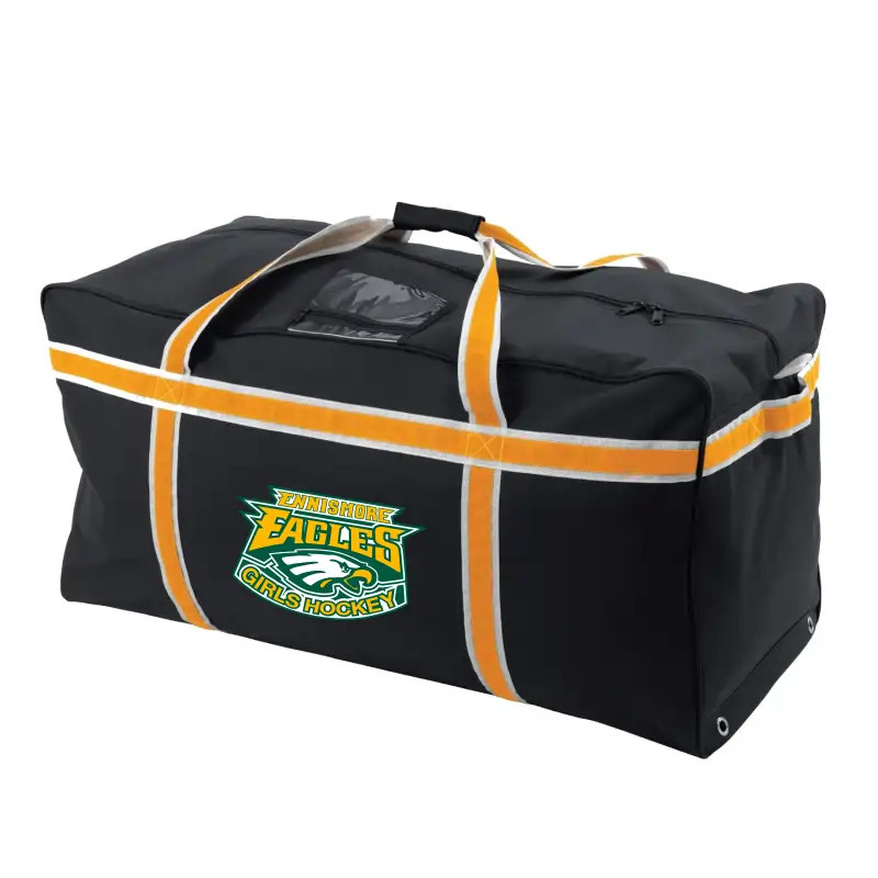 Comes with large Ennismore Eagles logo heat transferred on the front panel between strap banding.