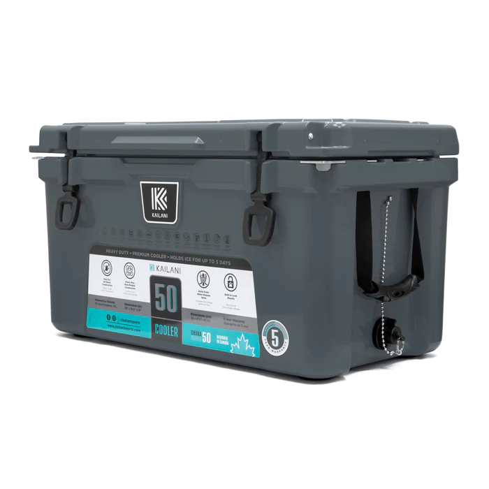 The all-new Kailani SHAKA 50 Cooler was designed and built from the ground up. This rugged yet practical design makes the SHAKA 50 perfect in any environment. This cooler can hold up to 74 cans plus ice and is a fantastic addition for every activity imaginable.